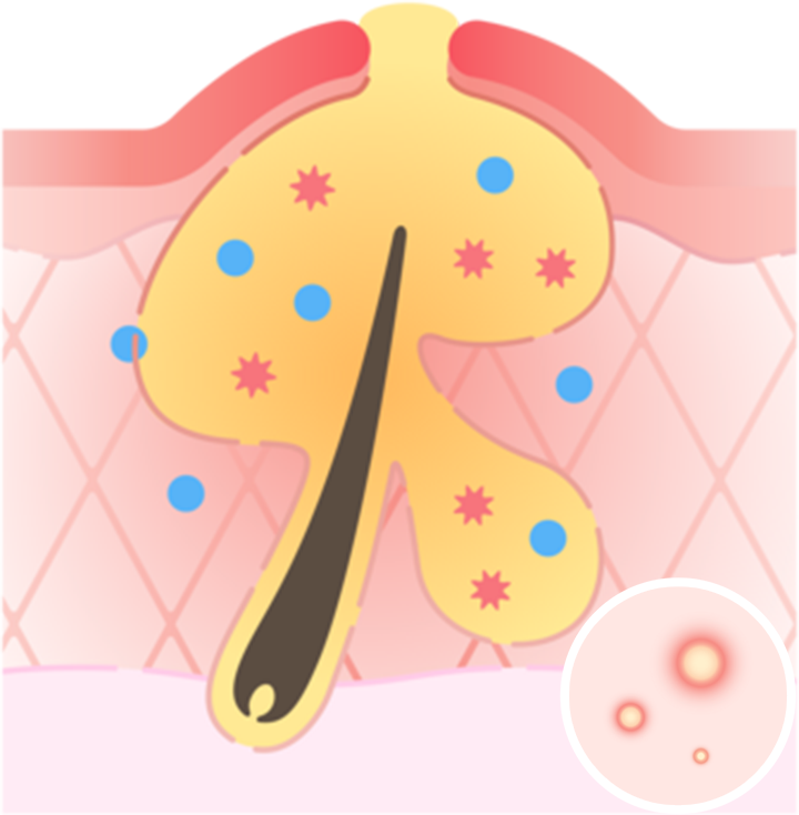 毛穴の詰まり → 炎症 → ダメージが残るという段階を経て進行していきます。