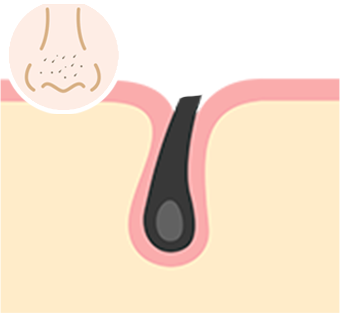 医学的には、毛穴が開いている状態のため「開放面皰(かいほうめんぽう)」と呼ばれます。