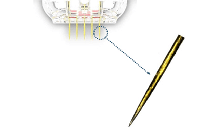 エリシスセンスでは、針先にステンレス製の金メッキマイクロニードルを採用しています。
